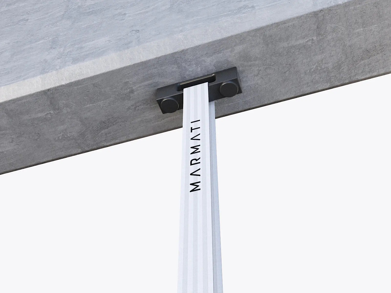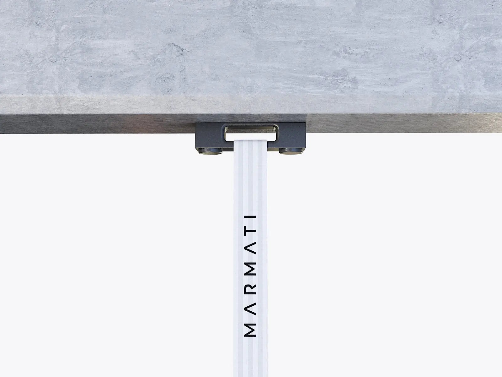 Concrete surface with a metal support structure featuring 'Marmati' branding. #color_black
