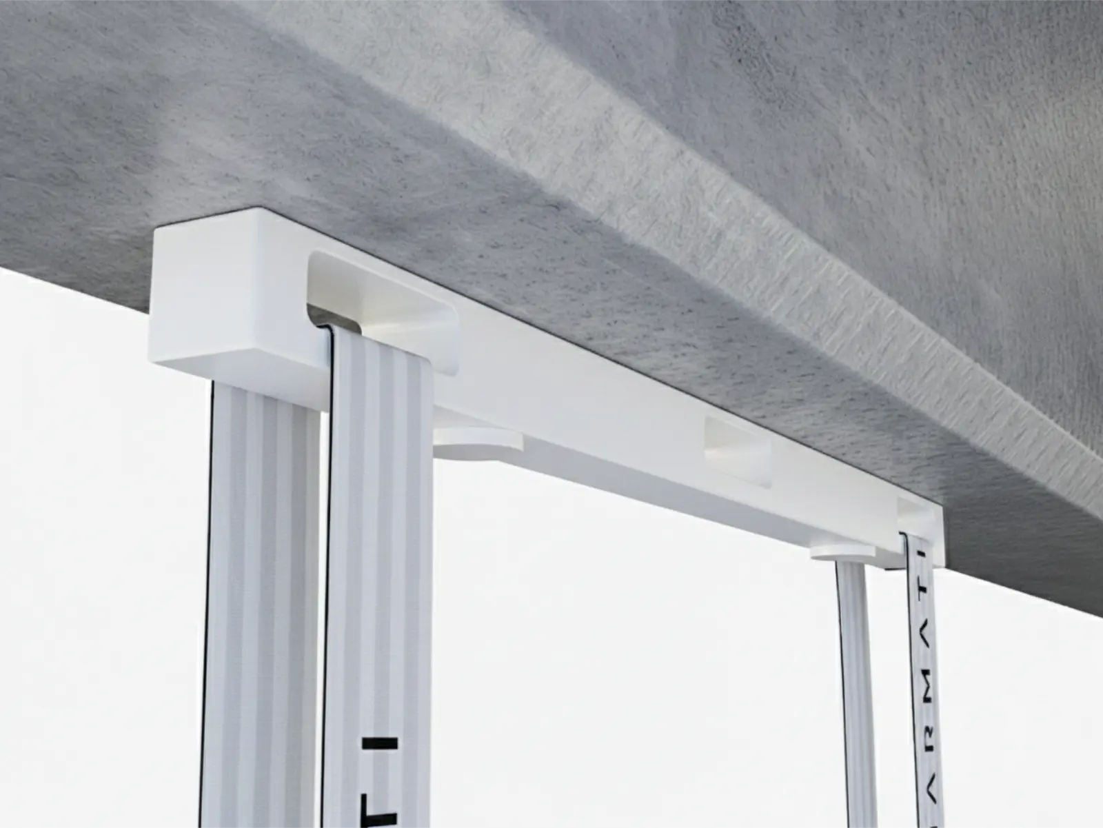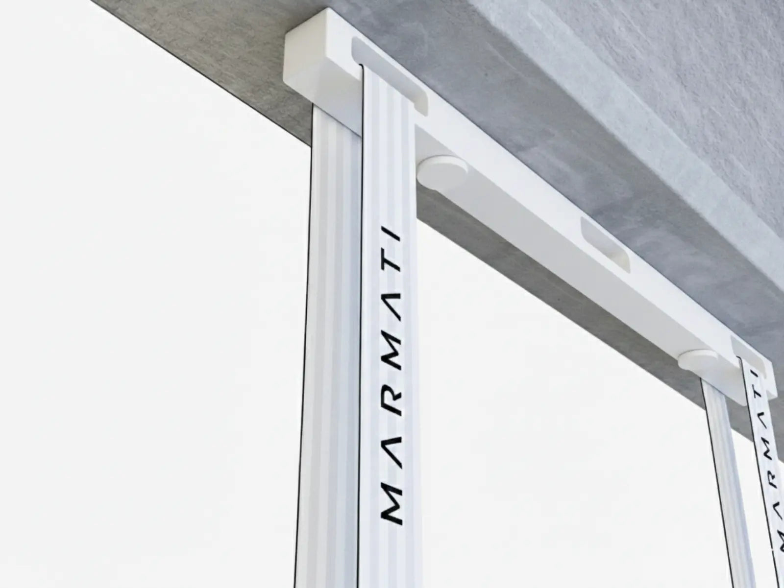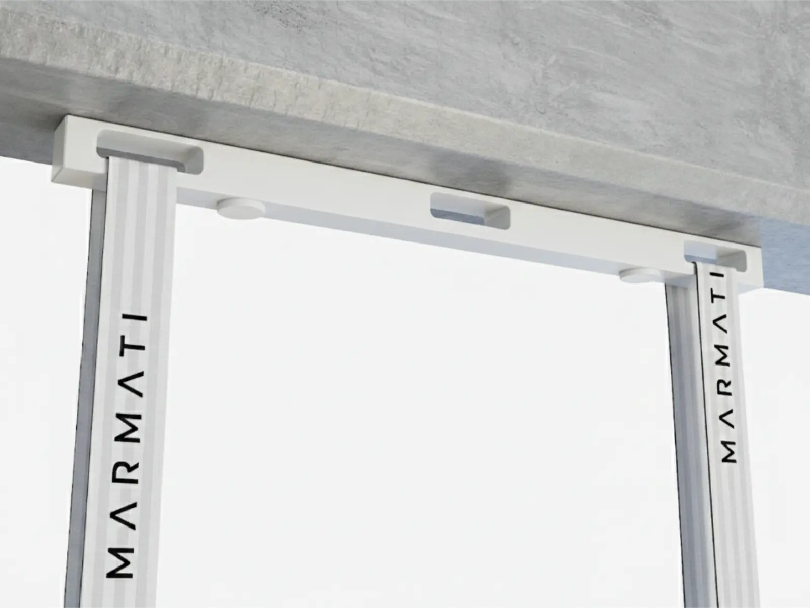Concrete surface with a metal support structure featuring 'Marmati' branding. #color_black