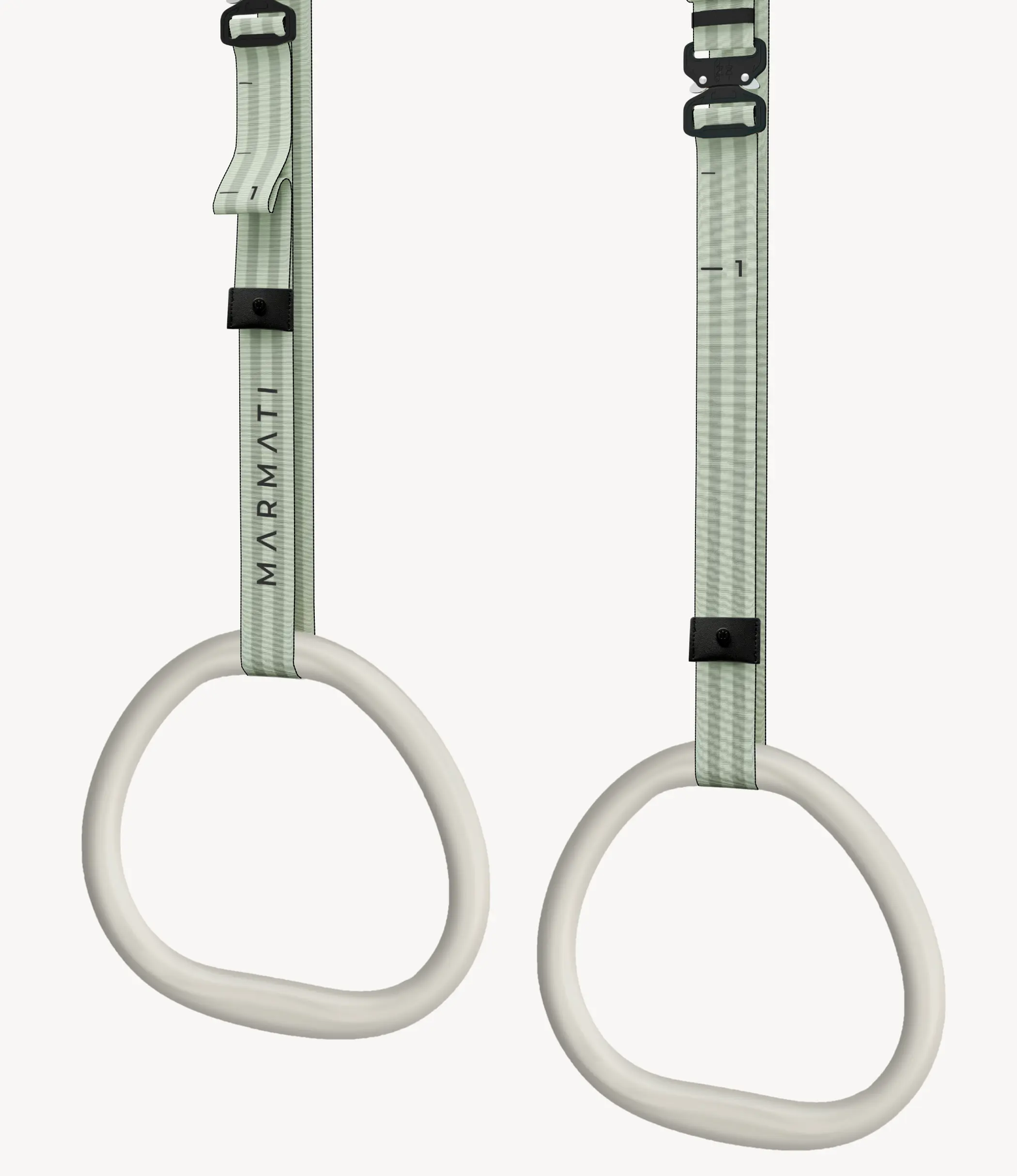 Set of adjustable gymnastic rings featuring smooth ergonomic handles for calisthenics exercises.